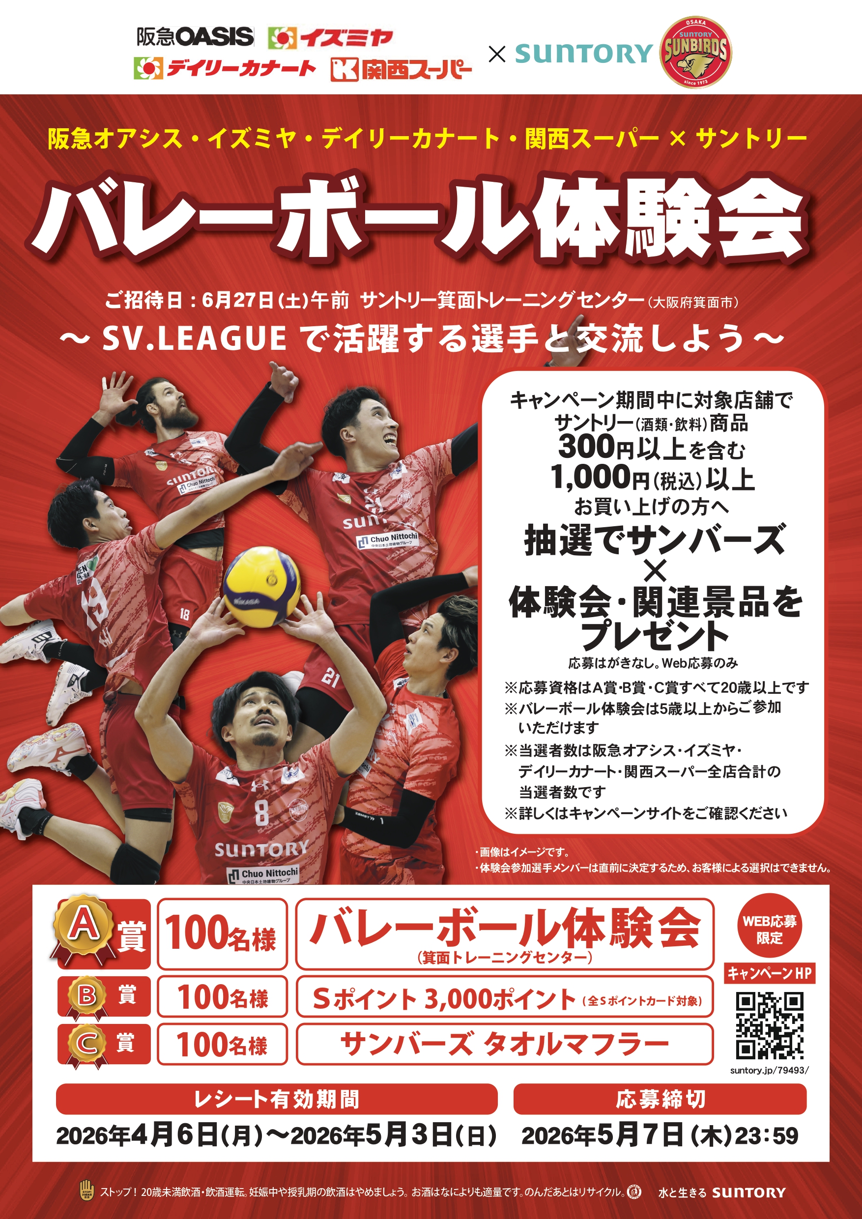 サントリー サンバーズバレーボール体験会が当たるキャンペーン