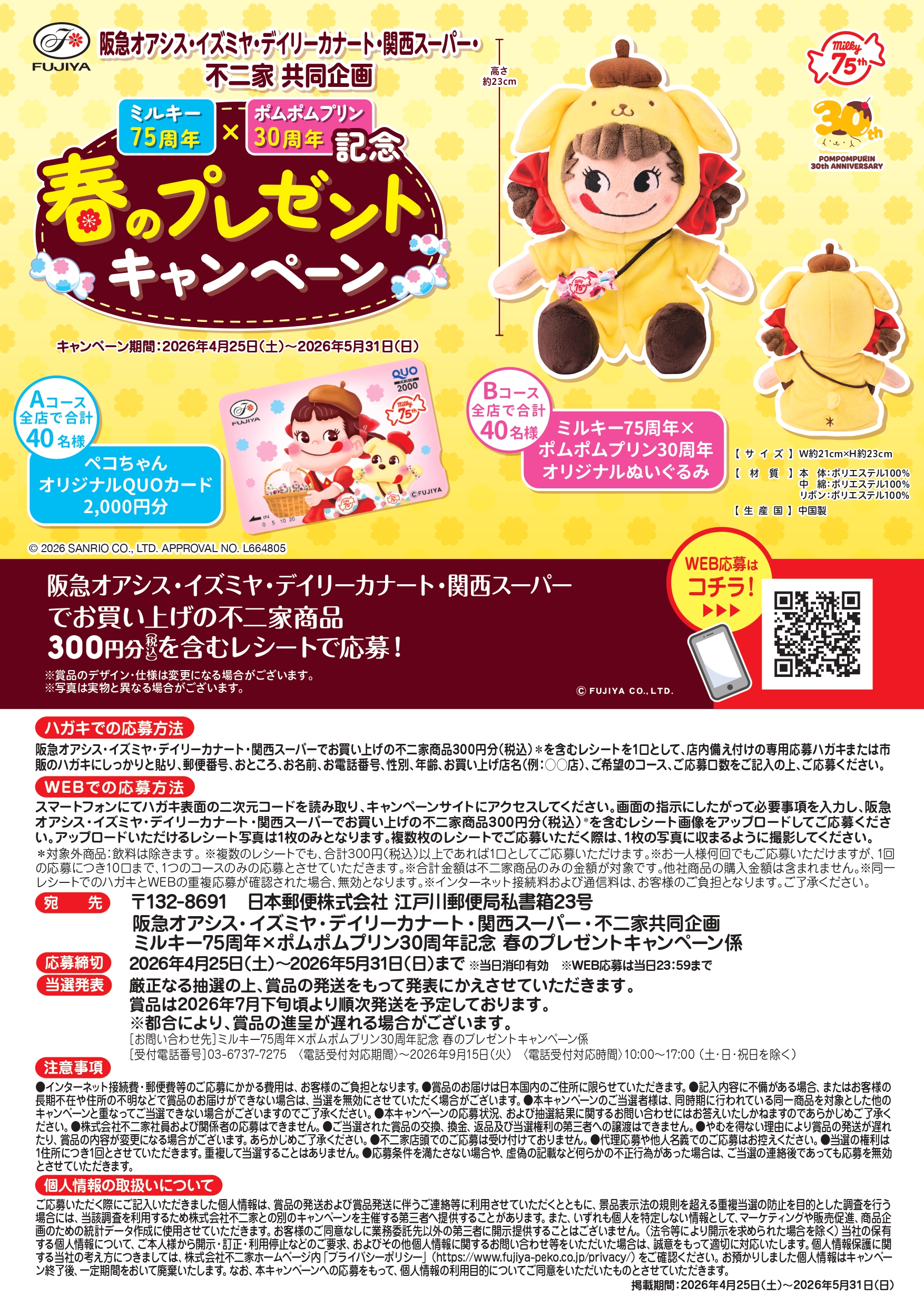不二家 ミルキー75周年×ポムポムプリン30周年記念 春のプレゼントキャンペーン