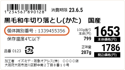 「トレース(追跡する)」と「アビリティー(可能性)」をくっつけた造語です。牛一頭一頭の個別番号(固体識別番号)を流通経路を通して継承することで、その履歴を追跡できる仕組みです。