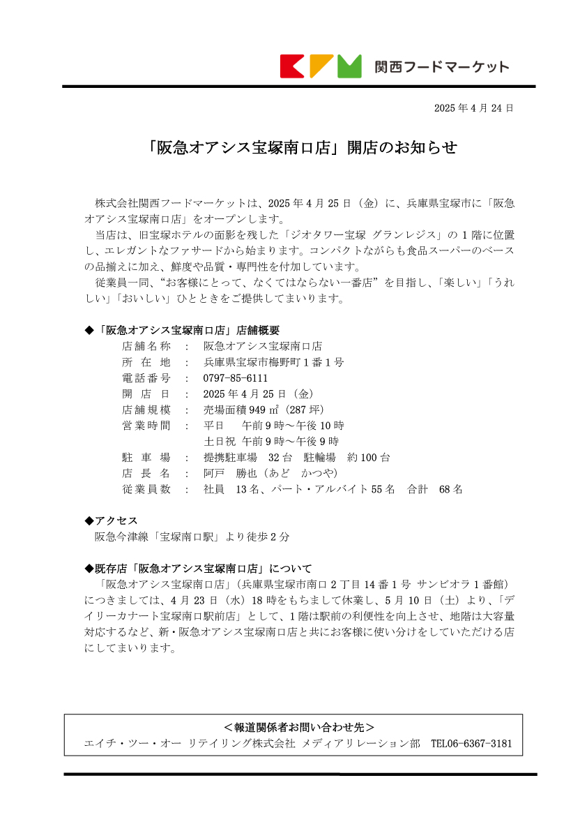 「阪急オアシス宝塚南口店」開店のお知らせ