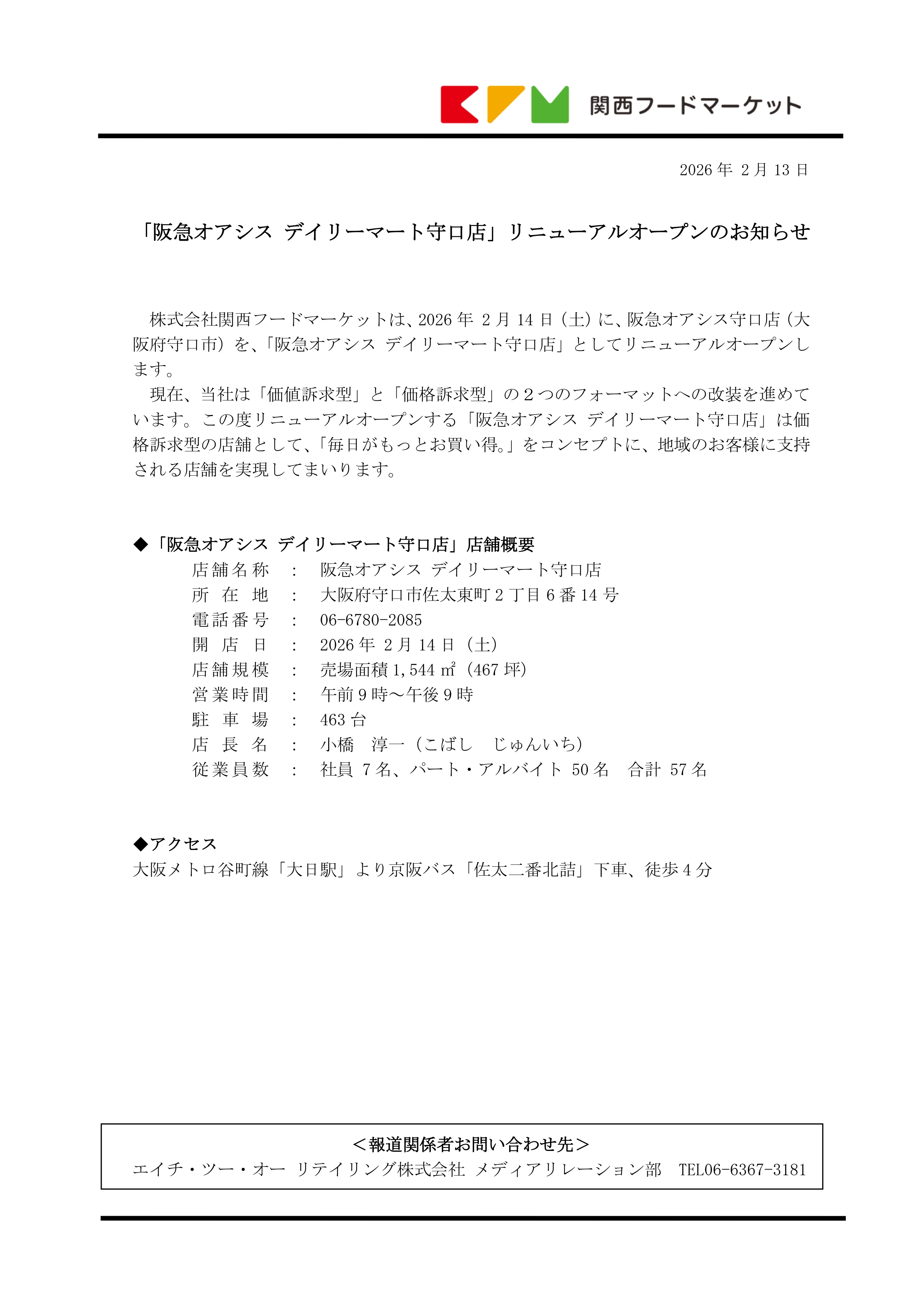 「阪急オアシス デイリーマート守口店」リニューアルオープンのお知らせ